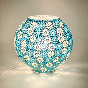 Light Blue Daisy Handmade Lamp in mosaic glass h. 32 cm. (big oval)