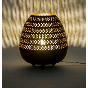 Lampada da tavolo artigianale intarsiata nera grande