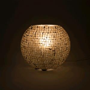 Partendo da una base in vetro trasparente gli artigiani applicano pezzi di vetro colorati componendo disegni unici e originali. La particolarità di queste lampade la si apprezza sia da spente, fungendo da vaso ornamentale, sia da accese da un lato per illuminazione e dall'altro come complemento d'arredo unico nel suo genere. Questa lampada indiana artigianale è composta da piccole formine quadrate dorate che donano a questo modello un aspetto molto chic. L'attacco per la lampadina (non inclusa nella confezione) è il classico passo grande (codice E27). Il porta lampada supporta dalle classiche lampadine standard fino alle più recenti a LED. Per ottenere l'effetto cromatico come nella foto è' consigliabile acquistare una lampadina con una resa minima paria a 60 Watt a luce fredda. La lampada da tavolo è fornita di cavo (lungo 1,8 mt.) con interuttore on/off tipo abajour (l'impianto elettrico è certificato CE - ENEC - KNEMA KNEUR by DEKRA). Questa lampada da tavolo in vetro è stata fabbricata nella regione del Rajhasthan nel nord ovest dell'India nel profondo rispetto del lavoro manuale.